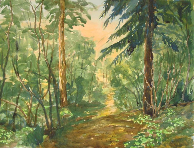 Kyststien ved Konglungen 1 -2013, akvarell, 46x61 cm